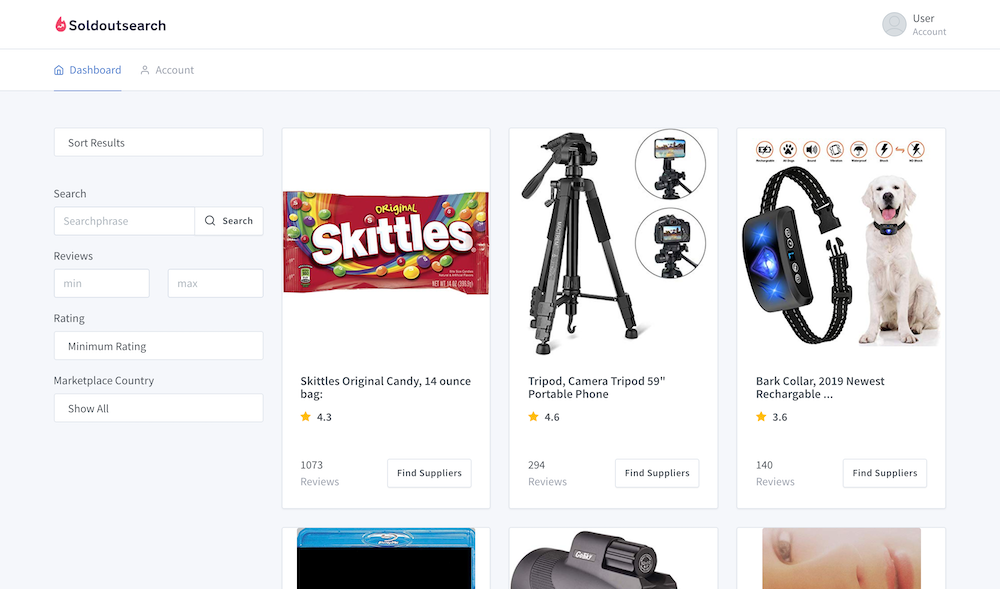 Find sold out products with hundreds of positive reviews.